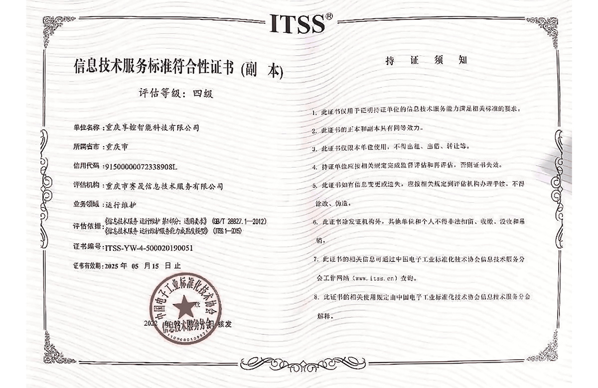 獲信息技術(shù)運(yùn)行維護(hù)標(biāo)準(zhǔn)符合性證書