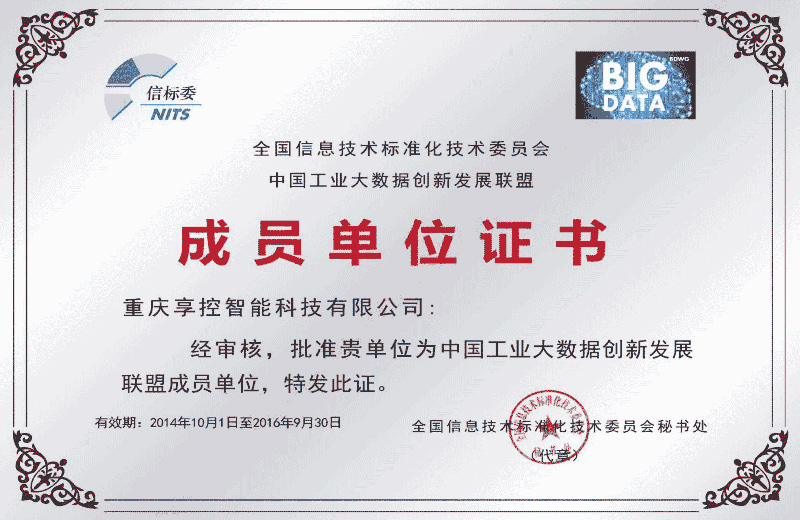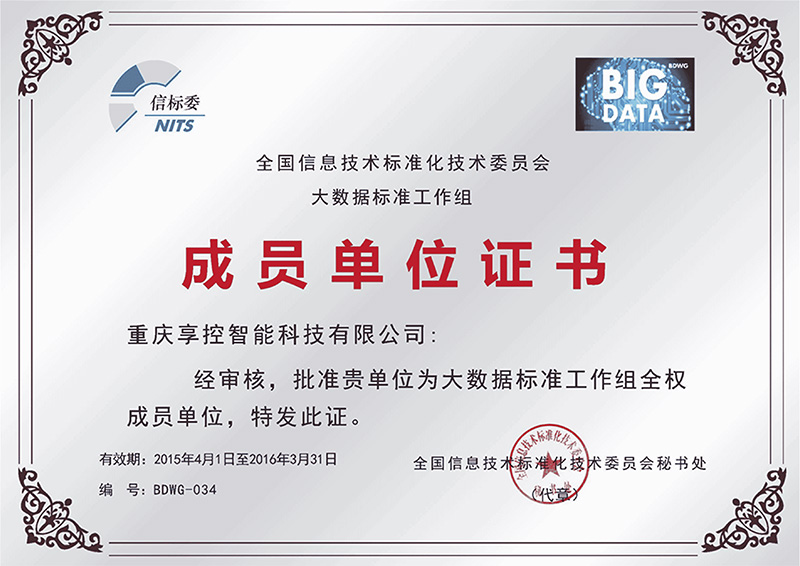 全國(guó)信標(biāo)委批準(zhǔn)重慶享控智能科技有限公司為“大數(shù)據(jù)標(biāo)準(zhǔn)工作組全權(quán)成員單位”